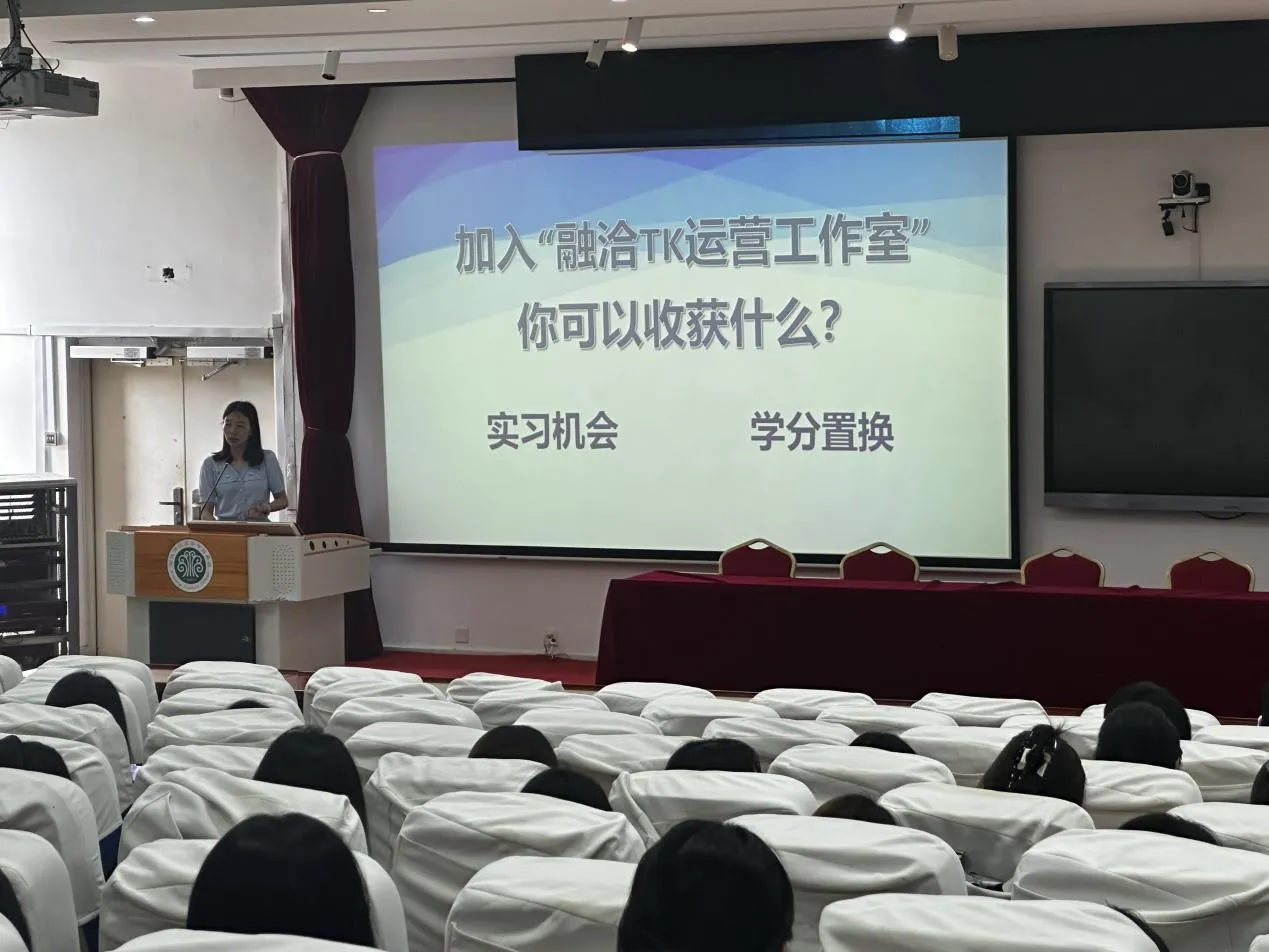 为进一步深化产教融合、推进校企协同育人,2025年5月21日下午,外语商贸学院于旗山校区1018教室与2018教室同步开展“融洽TK运营人才培养工作室”宣讲会。福州融洽网络科技有限公司总经理莫佳荣、外语商贸学院商贸教研室骨干教师肖怡文及产创中心秘书陈池出席本次宣讲会,23级跨境电商专业群三百余名学生参加活动。