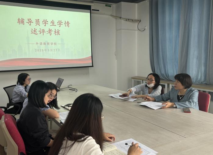 为深入贯彻落实立德树人根本任务,全面强化辅导员队伍专业化建设,切实提升学生教育管理服务的精细化水平,外语商贸学院于2025年5月27日下午于明德楼六楼第三会议室组织开展辅导员学生学情述评考核会,学院党总支书记林锦芯、副书记卢燕红及全体辅导员共同参与。
