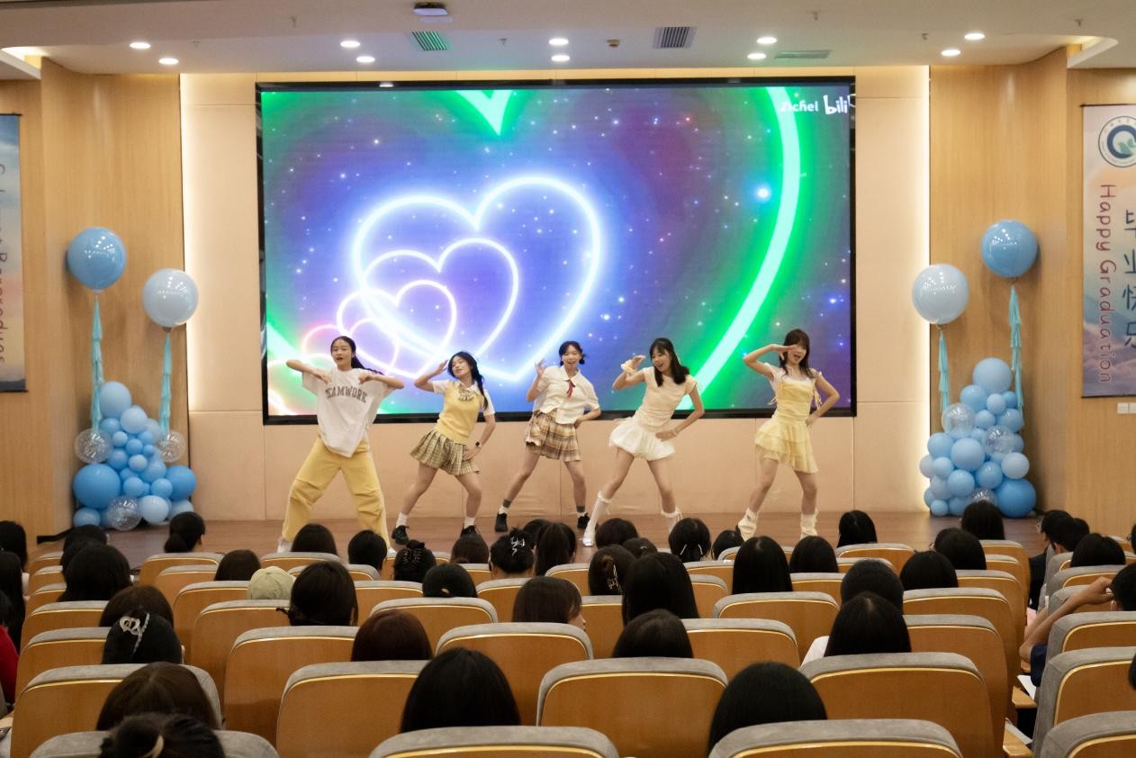 紧接着,一段街舞串烧表演《IZNA+YES or YES》活跃了现场气氛,营造了轻松的毕业氛围,台上的舞者踩着鼓点跃动,利落的旋转、默契的队形变换,赢得台下欢呼和掌声不断。抽奖环节再次点燃现场,尖叫与欢笑交织在一起,构成一段难忘的回忆。
