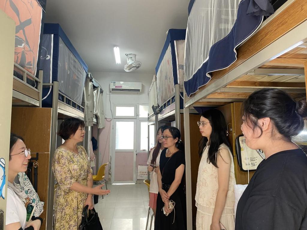 2025年6月23日,外语商贸学院党总支书记林锦芯携副书记卢燕红和辅导员们走进旗山学生社区,实地了解学生在宿舍的学习、生活、心理等情况,为学生送去关心和问候。