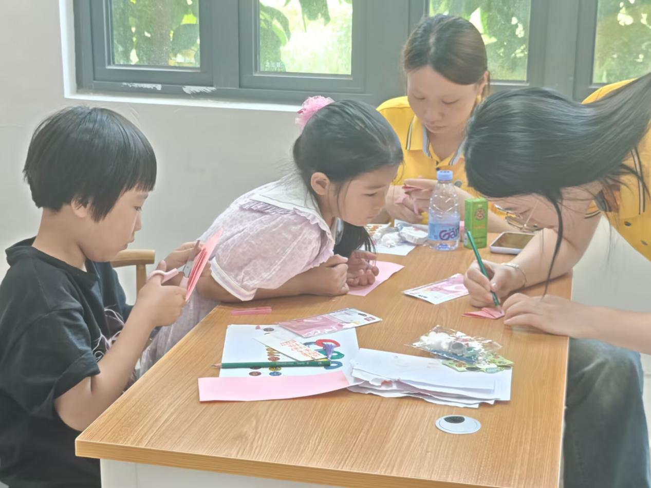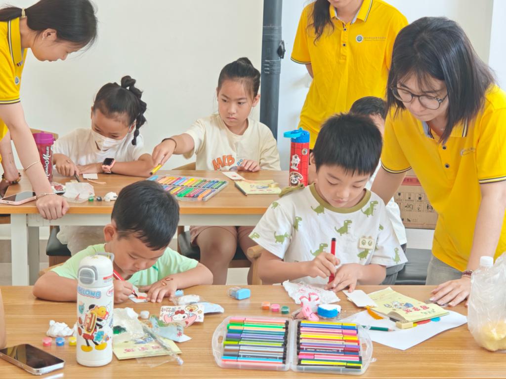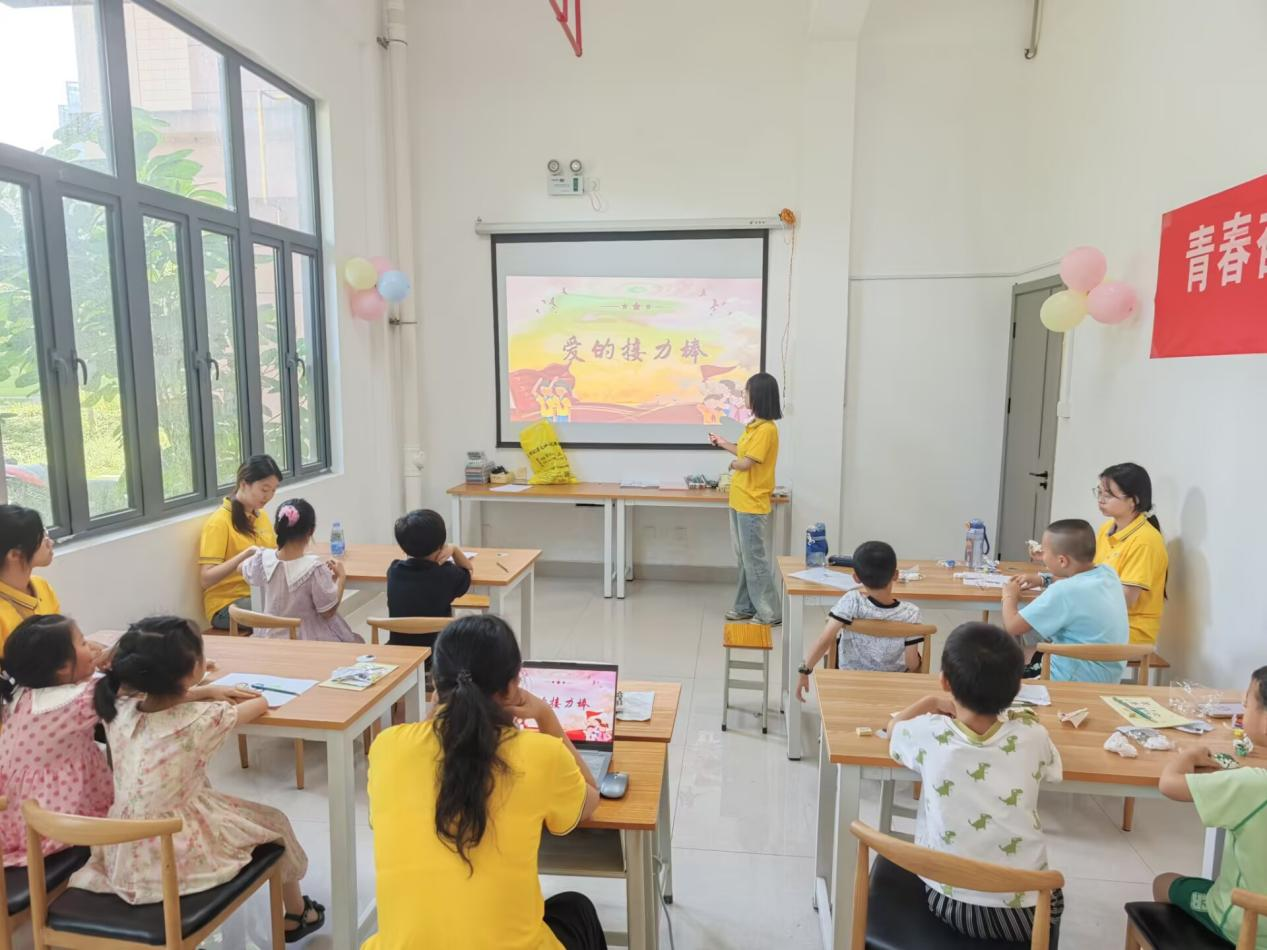 志愿者讲述党的光辉历程,以红色故事串联爱国精神传承。组织“从伟人到身边的人,每个人都是爱的接力棒”讨论,带领孩子们制作爱国书签,让红色基因悄然浸润心灵。