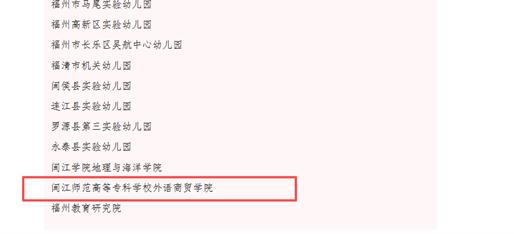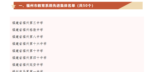 9月10日,福州市委、市政府表彰一批先进集体和先进个人,我校外语商贸学院荣获“福州市教育系统先进集体”称号。据悉,本次共有50个集体获“福州市教育系统先进集体”称号,85名同志获“福州市优秀教师”称号,15名同志获“福州市优秀教育工作者”称号,以表彰在推动福州教育事业高质量发展中作出的突出贡献。