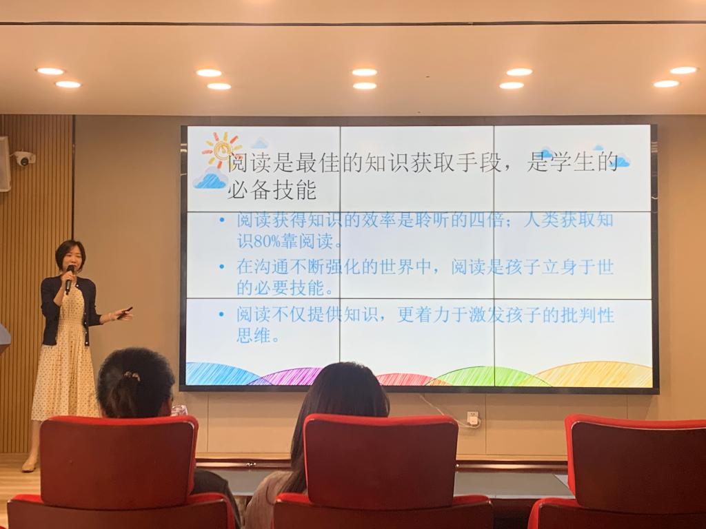 与此同时,另一位林玉华名师工作室成员,来自福州宁化小学教育集团的英语骨干教师颜冰琰老师带来了主题为《小绘本,大世界——让阅读成为“悦读”》的公益讲座,关于儿童阅读的重要性,以及怎样激发学生们的阅读兴趣。颜冰琰老师由浅入深,从家长的角度分享了学生们的学习特点,推荐了相应阅读水平的绘本,并为家长们提出的孩子阅读相关的问题答疑解惑。