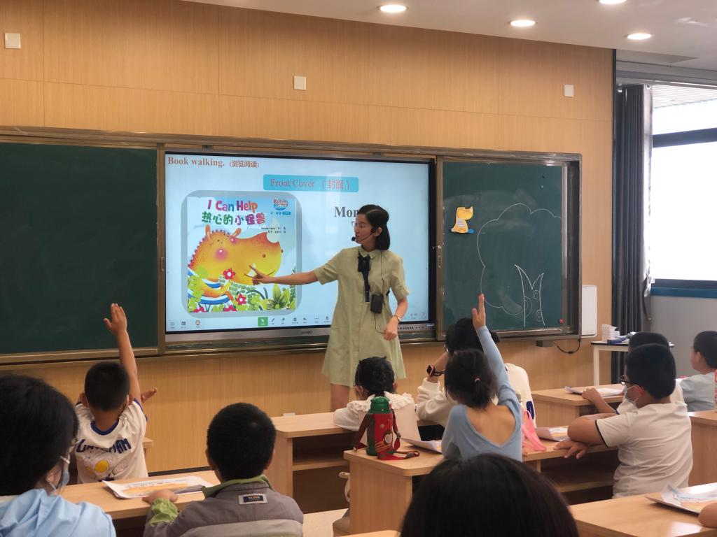 在本场活动中,台江区小学英语林玉华名师工作室成员、福州市光明小学骨干教师吴斌老师带来Icanhelp绘本教学。在教学的过程中,吴斌老师坚持以学生为中心,在做中学、学中玩。她创设情境,利用教学用具,用生动有趣的方式向学生们解读绘本,激发了学生听故事、读故事、学语言、讲故事的兴趣。在吴斌老师绘声绘色、声情并茂的引领下,孩子们沉醉其中、积极思考。