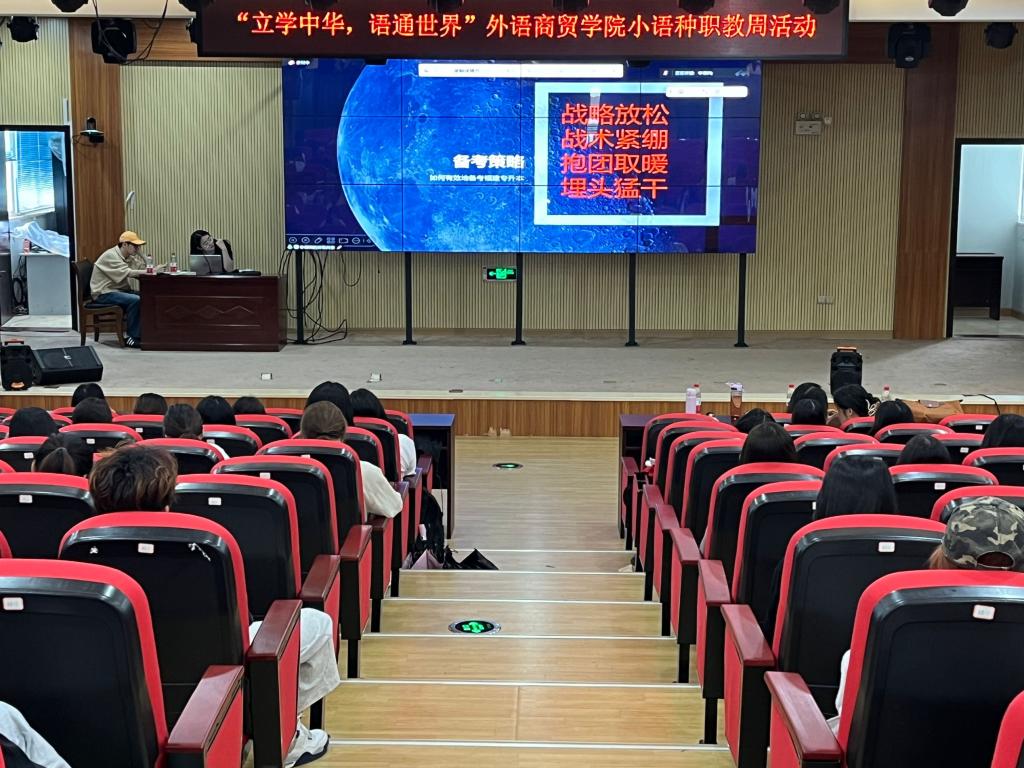 会上,21级应用外语(马来语)的陈婷同学分享自己参与马来亚大学交换生项目的经历,她从行前准备、出国后的困难挑战、多元文化的学习收获等方面阐述了自己的心得体会,鼓励同学们把握机会、挑战自我、开拓眼界。21级应用外语(柬埔寨语)的辛德民同学通过自己备战2024年专升本考试的亲身经历,和同学们分享备考策略,鼓励学弟学妹们做好准备。21级应用外语(马来语)的蔡佳慧同学分享自己参与永思校企合作工作室并通过企业考核进入正式实习的经历,她鼓励同学们在校阶段要珍惜学院提供的校企合作实习实训机会,敢于试错、勇于发现自己新的潜能。