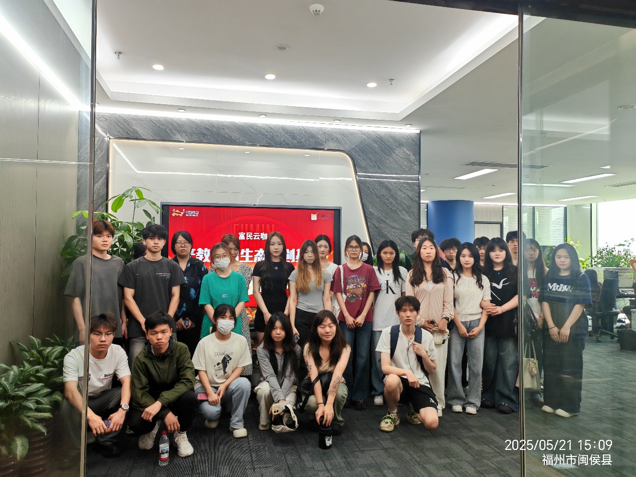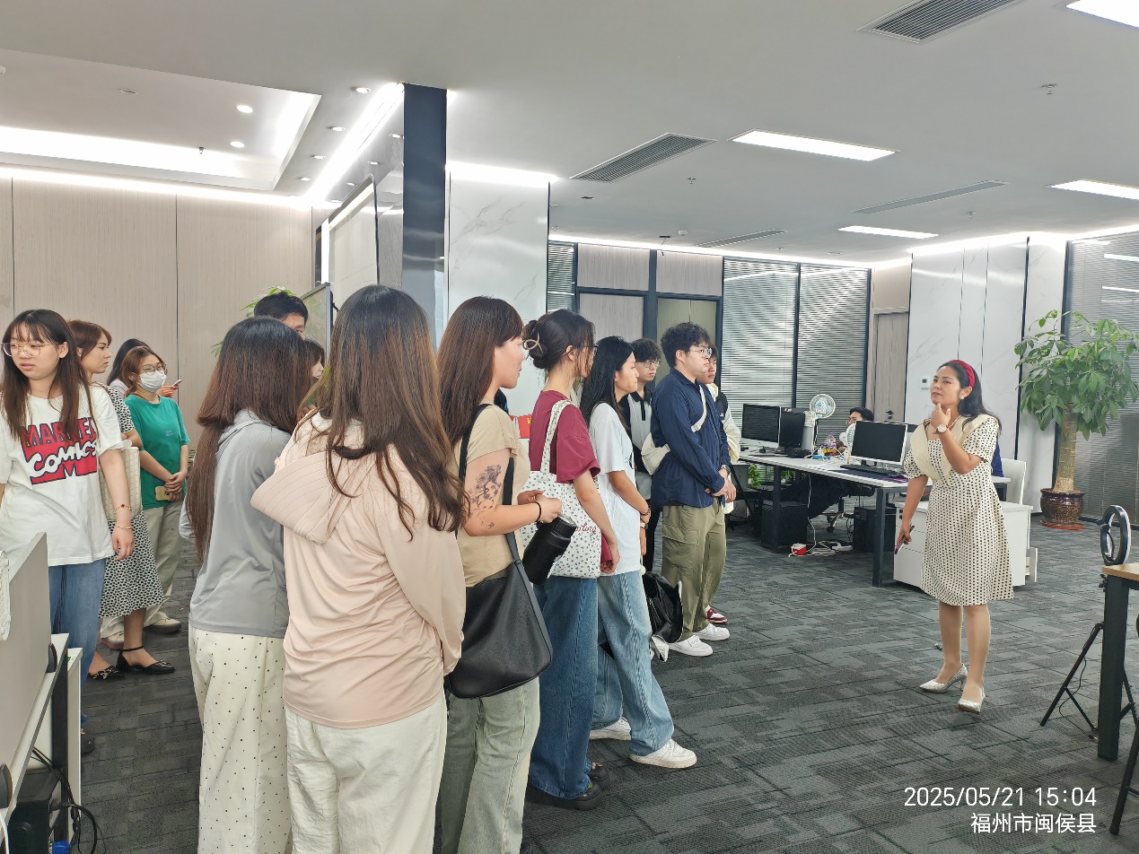 为贯彻落实全国职业教育大会精神,大力弘扬“劳动光荣、技能宝贵”精神,提升学生职业素养,5月21日下午,应用外语教研室、商贸教研室联合开展校企合作企业见习系列活动,组织23级非师专业学生前往不同类型的校企合作基地进行参观学习。跨境电商专业群30位同学在林超老师的带领下,前往富民云咖集团进行见习。富民云咖集团是国家高新技术、福建省高新技术双认证、福建省首批产教融合型培育企业。作为“产教融合+互联网+企业服务”的人才孵化培育单位,围绕院校、人才、企业,通过“大数据+平台”搭建“教育链、人才链、产业链、创新链”四链合一产教融合模式,提供人才培养全程服务。