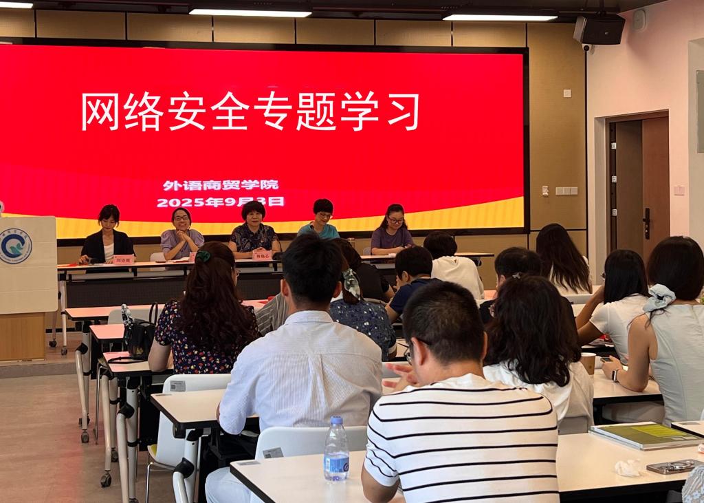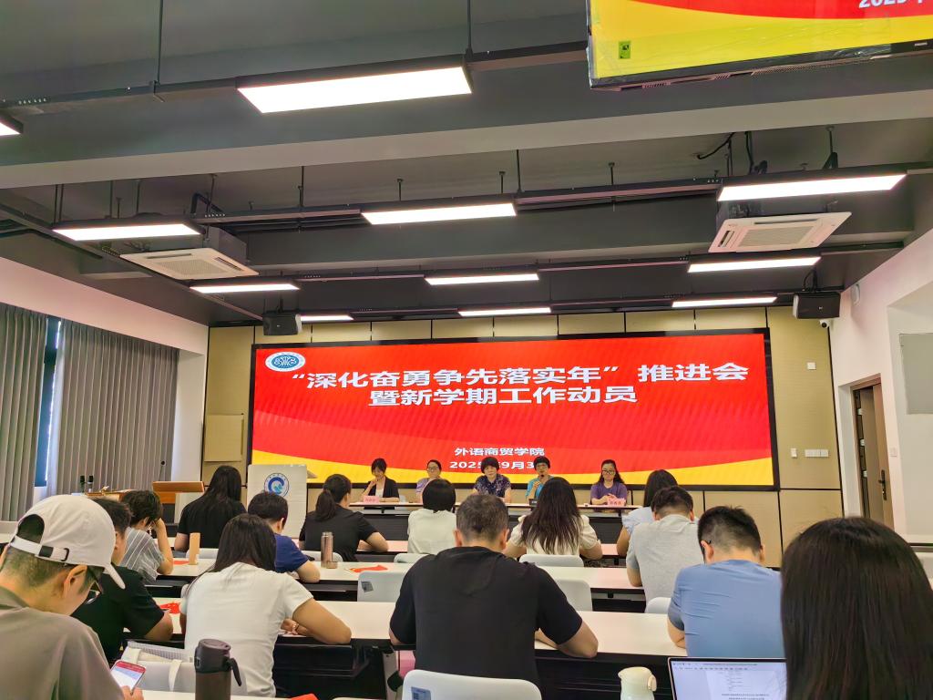2025年9月3日上午,外语商贸学院于产创楼307多功能报告厅召开2025年新学期全体教职工会议。学院党总支书记林锦芯、院长何少娴、副书记卢燕红、副院长陈海燕、副院长刘诗雨及全体教职工参会。会议由刘诗雨副院长主持。