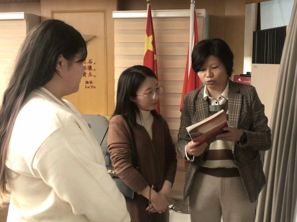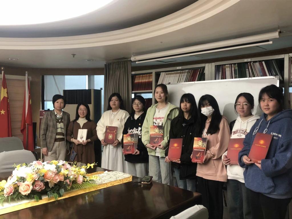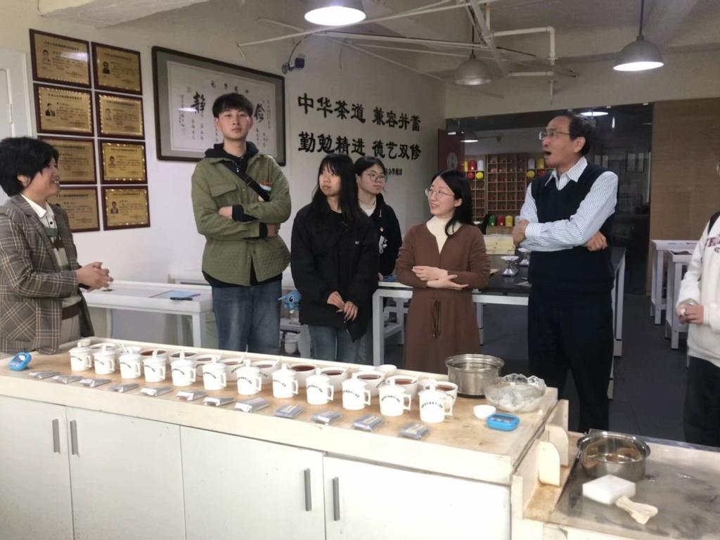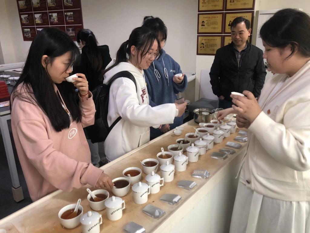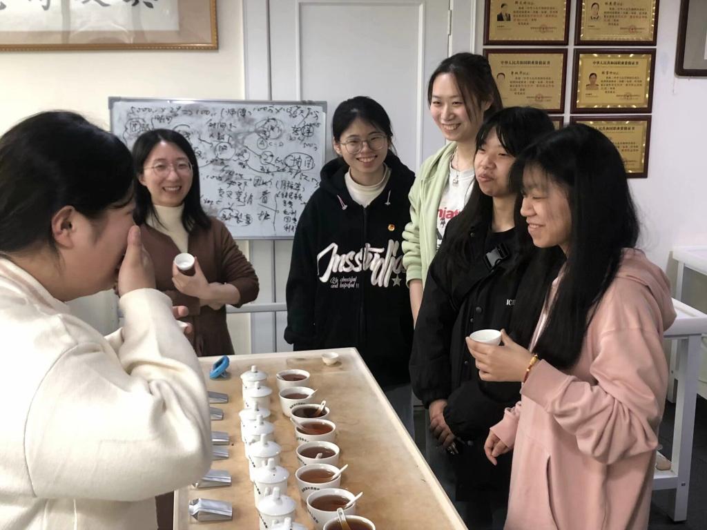 郑火娇校长带领团员们参观了元泰红茶创客中心、茶艺中心、鉴定站教室、元泰红茶图书馆等场所。在红茶图书馆,双方互赠《福建省茶产业发展报告(2022)》《中国红茶经典》《元泰杯红茶世界正文比赛特刊》《真爱时光》等书籍;在茶艺中心,郑校长亲自为师生们冲泡“元泰杯”比赛茶样,同学们在闻香气、品红茶、猜茶样中深度感受到了红茶文化的博大精深,同时团支部的叶龄萍和林桢同学还为大家带来了第二届全国马来语演讲大赛获奖作品《通过茶感受中国文化的魅力》和《一带一路 共赢合作》,现场气氛十分活跃。