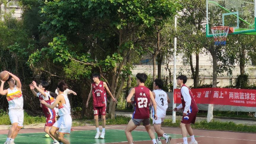 为了增强学生团队精神和凝聚力,促进校园体育文化发展,外语商贸学院联合化学与生物技术学院分别于3月27日在福清校区篮球场以及4月10日在仓山校区篮球场举行了两场以“以球会友,迎‘篮’而上”为主题的篮球友谊赛。化学与生物技术学院党总支书记王华、院长陈宗保、党总支副书记张瑛、辅导员王鑫、龚俊浩老师及我院党总支书记林冉、陈晨老师、郑亦琅老师亲临现场