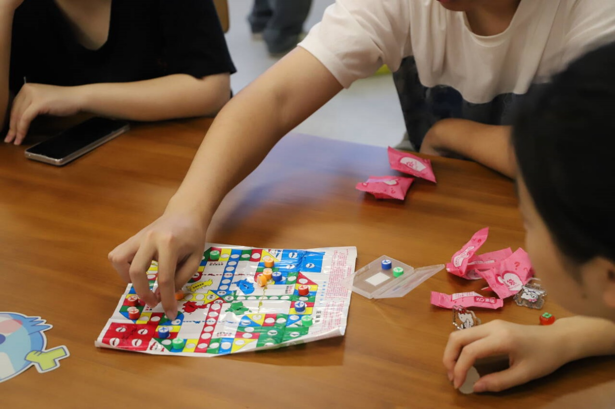 此次活动包含三个环节。第一个是热身小游戏。同学们根据工作人员随机抽取的两段垃圾分类小知识,根据拼音将声母都替换成“d”进行朗读。个别同学反应非常快,很快就能顺利朗读出来,现场氛围逐渐变得轻松愉快。第二个活动需要根据游戏棋上的垃圾分类相关问题进行回答,答对才能前进。同学们认真思考,积极回答,在游戏中学习到许多关于垃圾分类的知识。最后一个活动,则是以团体为单位,任意一名学生随机抽取一个垃圾分类小词语,用动作向后面的同学传递,由最后一个同学猜出词语,通过这个游戏增进了彼此之间的友谊和团队合作精神。