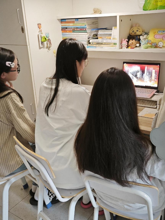 美好的一天从早八开始。打开灯光,拉开窗帘,迎接今天的第一缕阳光,忙碌的一天就这样简单地开始了。短暂的时间不由得让她们加快步伐。她们一起刷牙,洗脸,化妆;一起上课,学习,讨论;一起吃饭,睡觉,玩乐;简单而平凡的小事,却在大家的相处与陪伴中显得温馨,富有烟火气。欢声笑语中她们陪伴着彼此,日常的点点滴滴却构成她们最真实、最温馨的回忆。