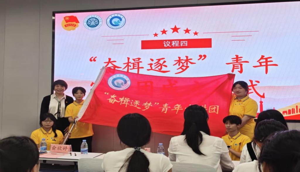 为更好传播“以奋斗精神为动力、以梦想追求为导向”的价值观念,发扬青年学生的榜样力量,鼓励青年立大志、担大任,将个人成长与国家发展紧密结合,外语商贸学院学生党支部成立“奋楫逐梦”青年宣讲团。党总支书记林锦芯为宣讲团授旗。成立仪式上,宣讲团成员结合“五四精神”与青年成长,进行第一次宣讲。