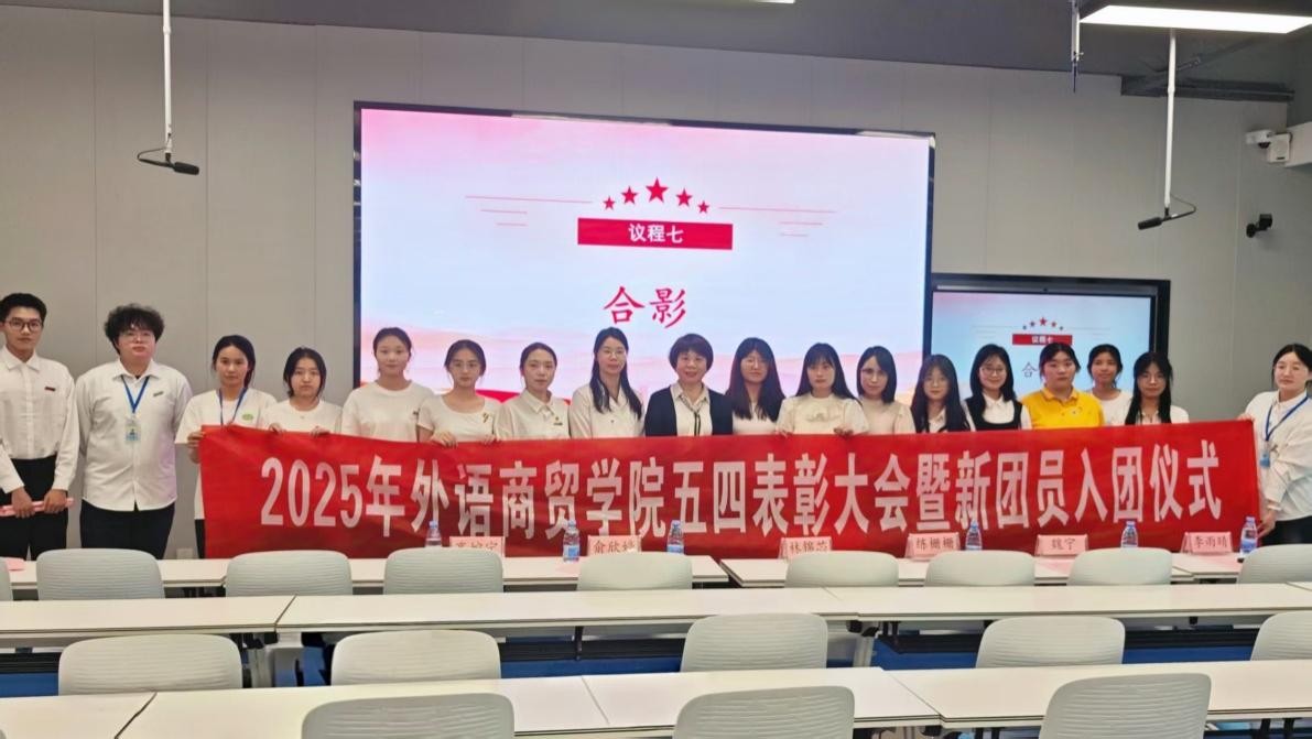 5月7日下午,外语商贸学院在旗山校区学生社区举办五四表彰大会暨新团员入团仪式。学院党总支书记林锦芯,团委学生会指导老师、学生党支部书记练栅栅,全体辅导员以及团员代表共同参加此次大会。