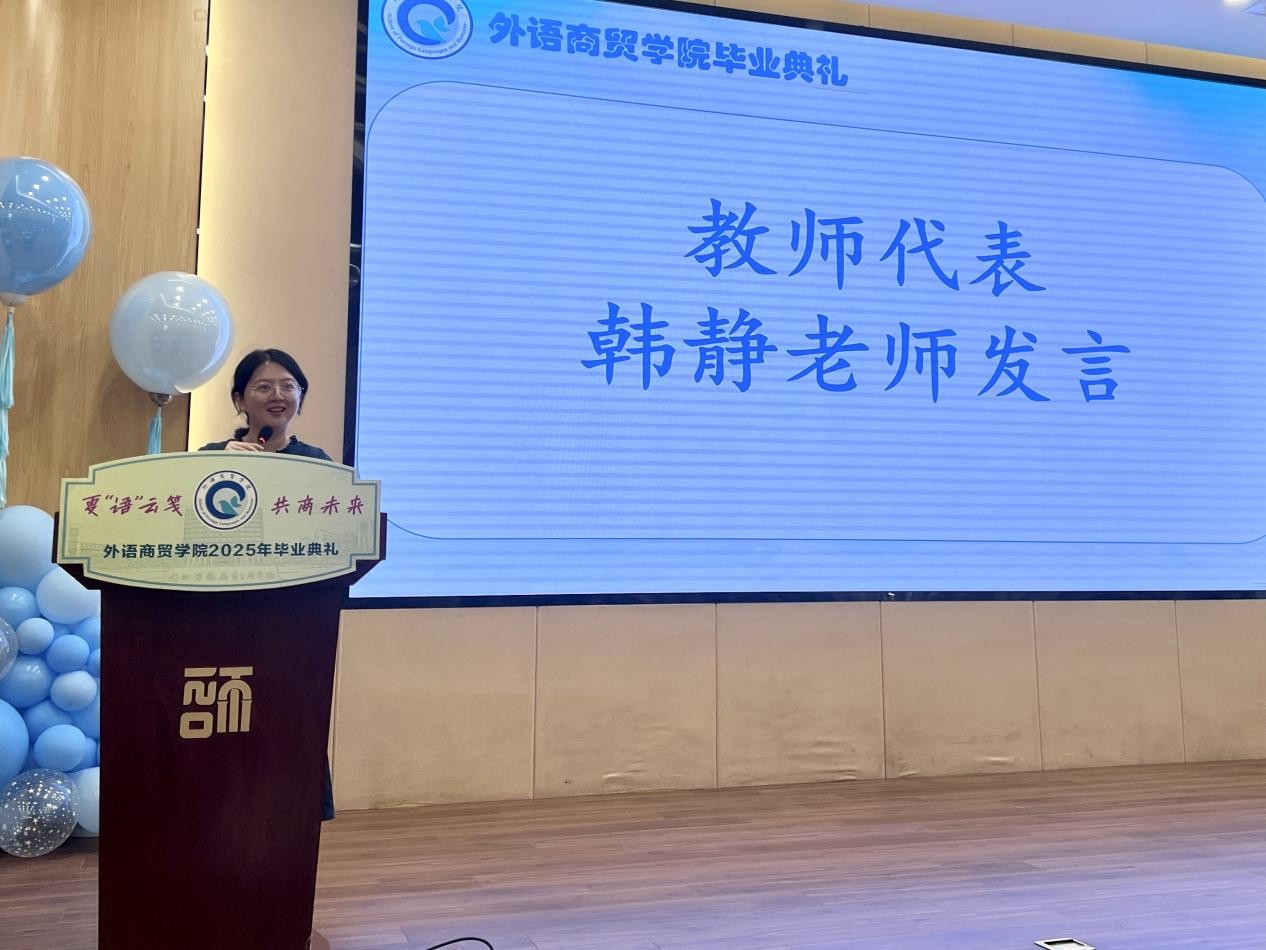 教师代表韩静老师深情发言,对毕业生们给予殷切的希望,愿每一位毕业生,带着母校的期许与祝福,怀揣梦想,勇敢前行。