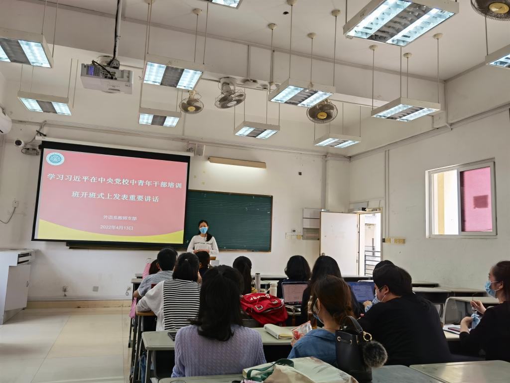 2022年4月13日下午,外语商贸学院教师支部于旗山3001教室开展了4月份理论学习和“红色外语”之“建党100周年”系列微党课学习。