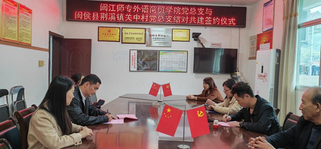 为了更好的发挥党建引领推进乡村振兴、加快农业农村现代化建设的作用,4月6日下午外语商贸学院总支书记林冉带队赴闽侯县荆溪镇关中村开展考察活动并签署结对共建协议。同行的还有教师支部纪检委员程妍老师和院办王心宜老师。