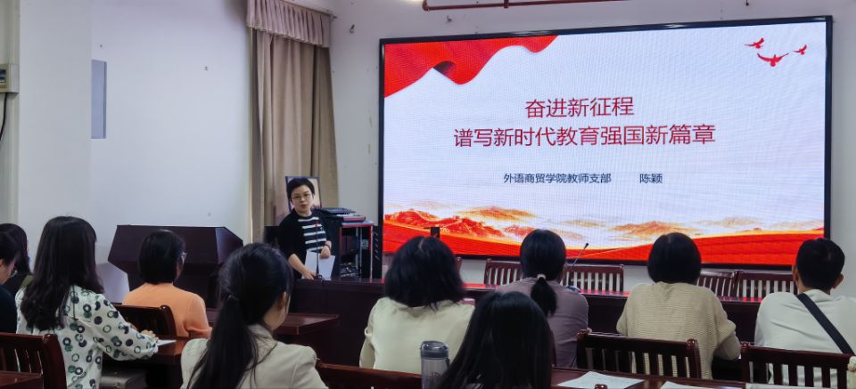 为落实“三会一课”要求,响应校党委主题教育号召,我院教师党支部于11月7日开展“支部书记讲党课”活动,支部书记陈颖同志为教师党员们上了一节题为“奋进新征程,谱写新时代教育强国新篇章”的党课。