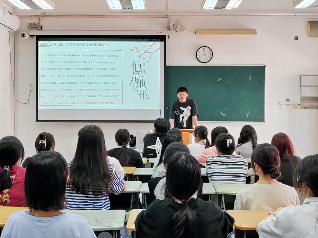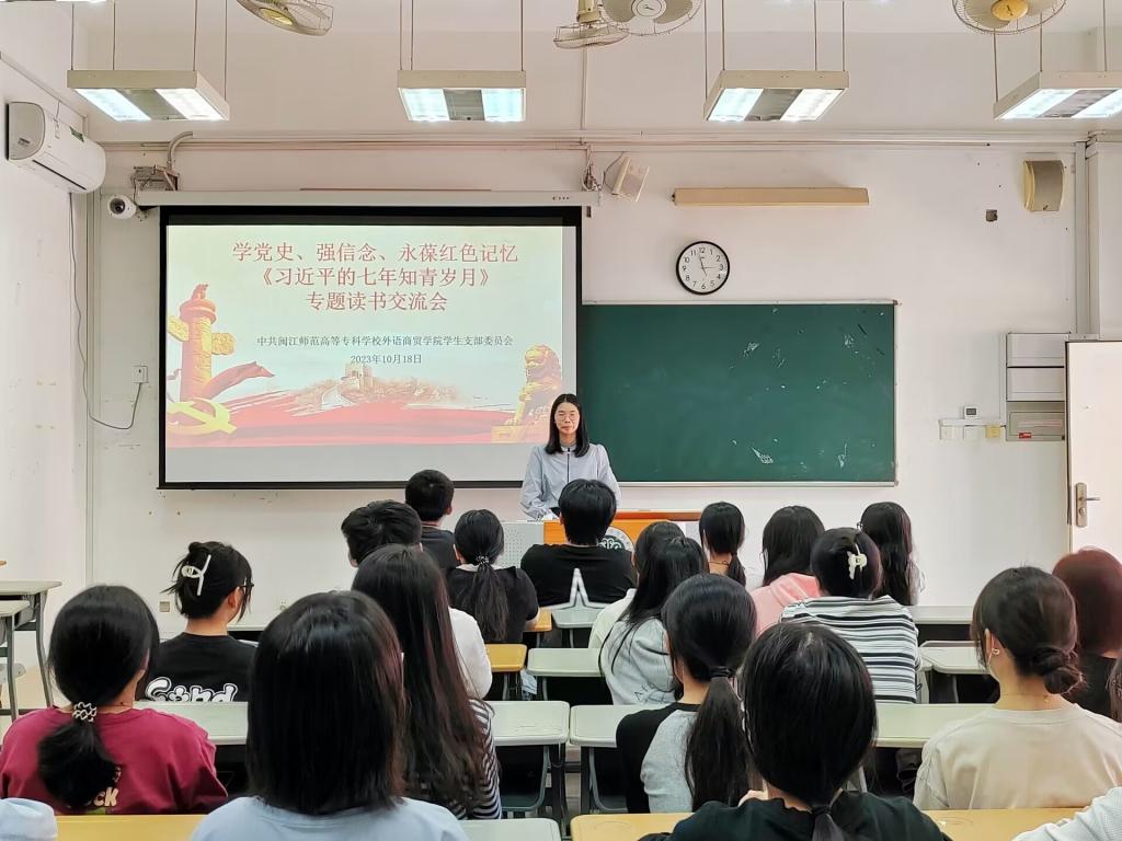 2023年10月18日,外语商贸学院学生党支部在4004教室开展预备党员读书会,读书会由预备党员陈云彬同志主讲,党支部全体党员及入党积极分子参会。