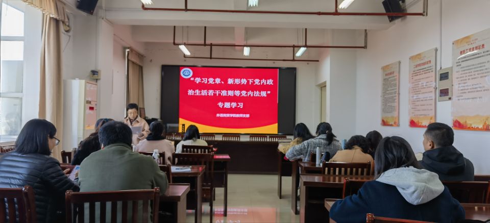 2023年12月27日下午1点,外语商贸学院教师支部在综合楼8楼党员会议室开展12月主题教育专题学习。