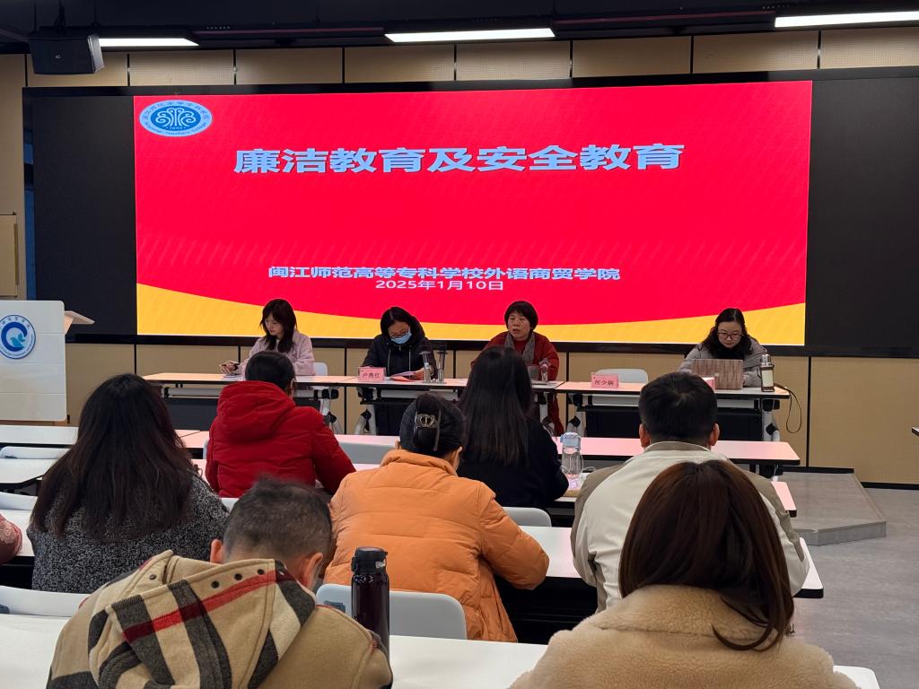 林书记还强调,教师作为学生成长的引路人,要以身作则,率先垂范。同时,注重家风建设,影响和约束家庭成员,杜绝任何可能影响教师职业形象的行为。会议最后,林锦芯书记勉励全体教师牢记“以德树人、以廉育人”的初心使命,通过廉洁从教树立崇高职业形象,为社会和学生家长展示外语商贸学院教师队伍的正气和风范。她希望全体教师以清廉作风为教育事业的高质量发展贡献力量,共同营造风清气正、崇廉尚俭的校园文化。