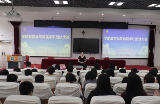 为了让学生充分了解结构化面试的流程,掌握面试技巧,提高学生的就业竞争力,学前教育学院于4月23日下午在2018教室开展首届求职面试大赛。学前教育学院党委副书记杨美玲出席本次活动,大赛邀请了理论教研室主任胡慧娟老师、王青莲老师、王玮老师、陈晓萌老师、吴鑫老师担任评委。此次比赛吸引了众多学生到场观摩学习。