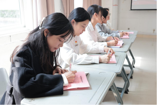 活动由支部毕业生党员同志进行经验分享,他们从就业、专升本等方面分享自己备考或寻求工作的经历。陈晓燕同志讲述自己求职就业的经验,她提到选择企业单位时需要考虑规模、行业地位、发展前景与个人规划的契合度,并指出打破舒适圈、探索自己的多元可能的重要性。林丞同志向其他同志分享自己宝贵的专升本备考经验,她从自身基本情况、院校选择、备考规划等方面逐一讲解,同时提到专升本是一个持续奋斗的过程,要认准目标、倾尽全力、放平心态。参会同学全神贯注,不时认真记录,现场氛围浓厚。