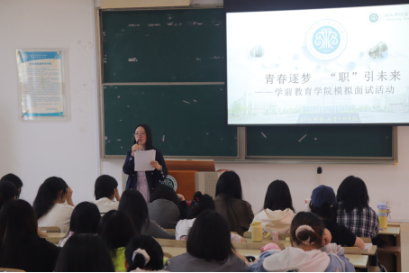为切实提升2025届毕业生的求职技能,增强他们在就业市场中的竞争力,帮助学生提前熟悉面试流程与技巧,5月7日,学前教育学院在1014教室成功举办了青春逐梦,“职”引未来模拟面试活动。本次活动聚焦毕业生即将面临的求职关键阶段,致力于为同学们提供实战演练与专业指导的平台。
