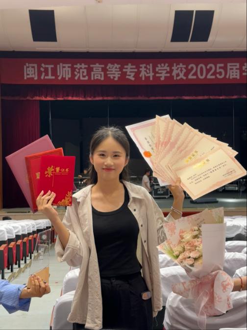 在生活上,她乐观友善,积极参与迎新、社区助老等志愿服务。凭借持续的努力与优异表现,她曾获2022-2023学年国家励志奖学金、三好学生、校三等奖学金等荣誉。从专科到本科,从宿舍管理到回馈社会,吴晶铭以“破局者”的姿态,用奋斗书写青春,在追梦路上一路生花。