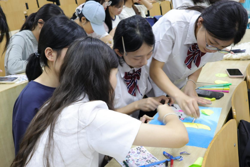 活动以宿舍为单位展开,学生们化身“绘梦师”,以便签纸为画布,彩笔为墨、荧光颜料为光,在四大创作环节中挥洒灵感、默契协作。在“材料创意领航”环节中,各宿舍领取绘画材料,丰富的创作工具唤醒了无限想象与创作热情;在“宿舍故事绘卷”环节,同学们勾勒出宿舍生活的点滴瞬间——深夜畅谈的真挚、共同奋斗的汗水、彼此陪伴的温情;“星空拼贴协作”中,各宿舍成员精心排列、拼贴作品,将一张张便签画编织成主题鲜明、情感饱满的“梦幻星空”作品。现场氛围热烈而温暖,灵感在纸间流淌,欢笑在空气中回响。最终,一幅幅融合记忆与情谊的“星空便签画”在展示墙上熠熠生辉,犹如点点繁星,共同照亮青春的轨迹。