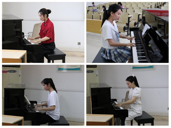 本场比赛分为钢琴弹唱和表演演唱两个环节,选手们先抽取表演的曲目再依次进入教室表演。首先是钢琴弹唱,选手们自信满满,弹奏出一首首动听的旋律,伴着清亮的歌声,完整地展示了一首生动的歌曲。紧接着,选手们随着伴奏进行舞蹈展示,丰富的肢体动作表达了对歌曲的理解,把儿童歌曲演绎得十分生动有趣。