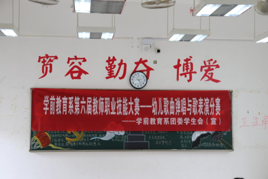 2021年4月26日至4月30日,学前教育系团委学生会在教学楼开展了第六届教师职业技能大赛幼儿歌曲弹唱与歌表演初赛。本次比赛由朱诗雅老师、陈鹤老师、黄靖喻老师、林雨晗老师、赵红阳老师、林秀玲老师、夏舒波老师、周晶老师担任评委,我系17级五年专、19级全体同学以及18级五年专、20级部分同学参与本次比赛。