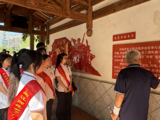 活动现场庄严肃穆,学生代表们首先在烈士纪念碑前默哀致敬,有序献花,随后,集体前往革命烈士牺牲地旧址参观学习,先烈后人翁纪湘老先生向大家讲述了鸡角弄英烈们的英勇事迹,从翁良毓的年少热血到方尔灏的铁骨铮铮,一个个鲜活的革命故事让在场的同志深受触动。最后,大家一同参观了革命历史长廊,通过斑驳的老照片和生动的故事墙,重温福州地区革命先辈们为民族解放事业浴血奋战的峥嵘岁月,深刻感悟“为有牺牲多壮志,敢教日月换新天”的豪情。