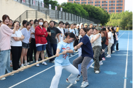 比赛设置“力拔山河”“妙趣套圈”“八字长绳”等五个集体项目,将竞技性与趣味性深度融合。“力拔山河”时,各班女生紧握绳索,身体后倾,全力以赴,展现出顽强的团队力量;“妙趣套圈”环节,同学们站定位置,目光紧盯目标,精准投掷,场内不时传来套中奖品的欢呼……每一次站上赛场,队员们都团结协作,奋勇争先,用拼搏为班级赢得荣誉,用汗水刷新纪录。最后的“食力争霸”,更是将现场气氛推向高潮,各获奖班级代表踊跃参与,笑声、欢呼声交织成一片欢乐的海洋。整个比赛过程中,同学们的信任与理解不断加深,彼此间的配合也越来越默契,新生们不仅体会到了活动的乐趣,也真正感受到了集体的温暖与力量。