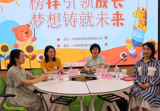 6月4日晚,学前教育系在3016教室举办了以“榜样引领成长,梦想铸就未来”为主题的大学生职业生涯规划指导座谈会。闽江师范高等专科学校第二附属幼儿园洪仲平园长和阳光思瑞艺术培训机构创始人、优秀校友张培烨出席会议并作了主旨演讲,学前教育系党总支书记、20学前教育1班班导师吴春艳老师莅临指导,辅导员李龙娇、系团委学生会代表、20学前教育1班全体学生参加了本次会议。