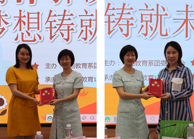 最后,吴春艳书记为洪仲平老师和张培烨老师颁发了“大学生成长导师”聘书,同学们为四位老师献上自己精心准备的手工花。活动在一片温馨而欢快的氛围中落下帷幕,但是却在同学们心中埋下了对职业的美好期盼以及努力奋进的种子。相信在校内班导师以及校外“大学生成长导师”的共同关心和帮助下,学前系的同学们将取得更大的进步。