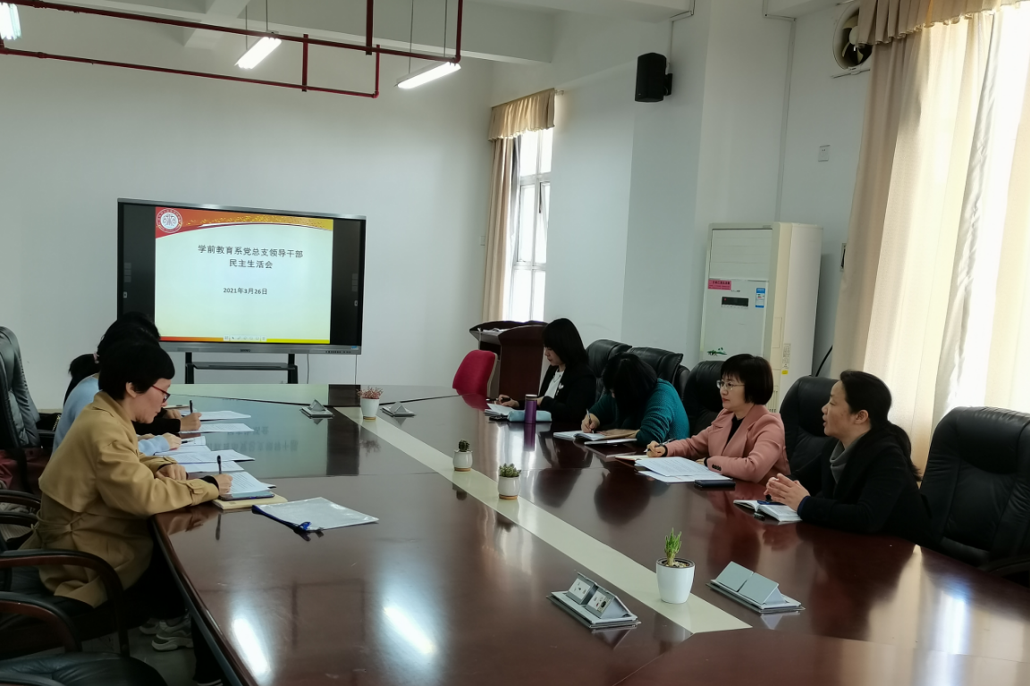 2021年3月26日,学前教育系(福州幼教集团)党总支在综合楼第三会议室召开党员领导干部民主生活会。学前教育系(福州幼教集团)全体领导干部参加了此次民主生活会。会议由系党总支书记吴春艳主持。