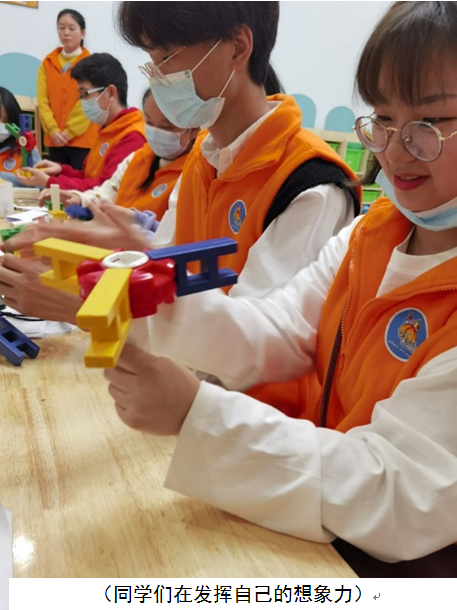 互动内容结束后,老师们带领同学们体验开发小朋友智力想象力的玩具。