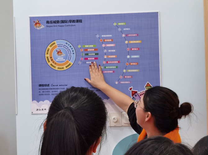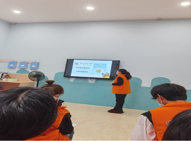 伴随着亲切的问好声,园长带领同学们进行测体温、戴口罩、穿鞋套、换工作服等入园程序,并向同学们介绍亲幼园的宗旨与获得的奖项,随后园长带领同学们进入教室来介绍亲幼园的发展历程,来让同学们更加了解到南瓜城堡亲幼园,南瓜城堡亲幼园是以全日制早托教育为前提,以全面的早托教育课程为基础的国际早托机构,通过互动式小班制教学、六大领域内容和六大教学体系的构建,来培养孩子群体生活能力和良好的生活习惯。