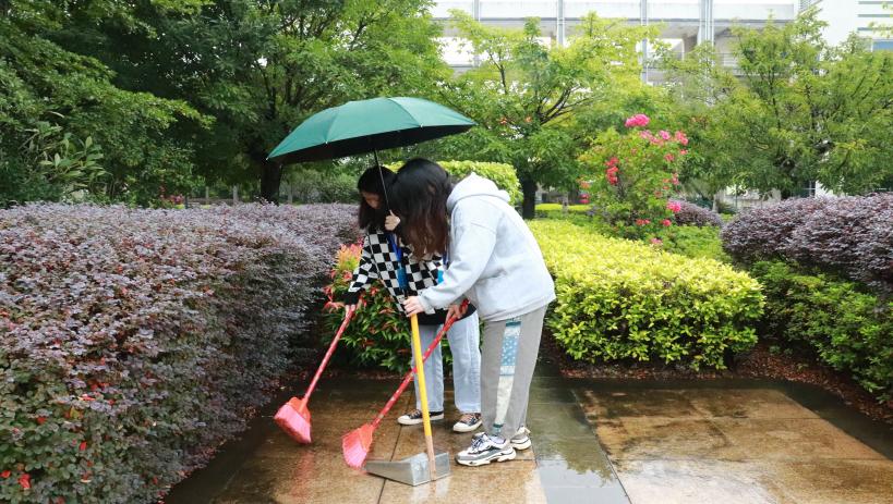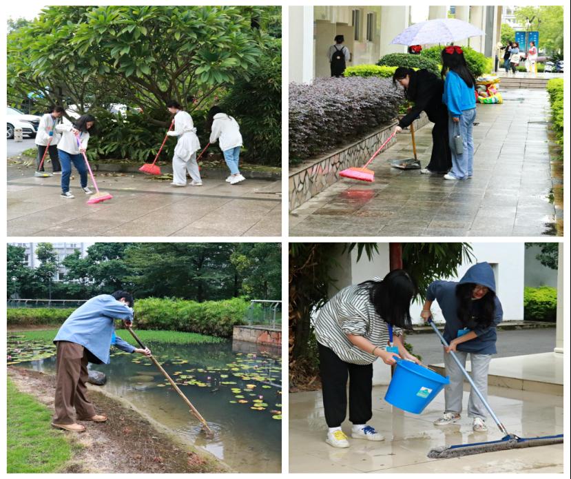 团结协作,有效实施。无论是教学楼、宿舍楼、实训楼,还是食堂、操场、冰心园,劳动的身影在校园内来回穿梭。雨天给劳动工作带来了不便,但是同学们也丝毫没有一丝懈怠。大家互帮互助、配合默契,不仅提高了工作效率,给大家带来了一个干净整洁的校园环境,也充分地展示了我系学子良好的精神面貌。