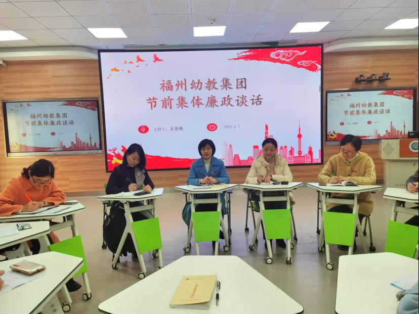 1月7日中午,学前教育系(福州幼教集团)在3016教室召开期末工作会暨节前集体廉政谈话。集团领导班子成员、各教研室主任及附属幼儿园园长出席会议,会议由学前教育系(福州幼教集团)党总支书记吴春艳同志主持。