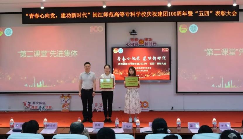 学前教育学院团委荣获校“五四红旗团委”、校“第二课堂先进集体”两项荣誉;5个团支部荣获校“五四红旗团支部”荣誉称号;48名团员荣获校“优秀共青团员”荣誉称号;12名团员荣获校“第二课堂标兵”荣誉称号;5名团员荣获校“明星志愿者”“优秀志愿者”荣誉称号;15名同学荣获“社团积极分子”荣誉称号。各项荣誉获得总数在所有学院中名列前茅。