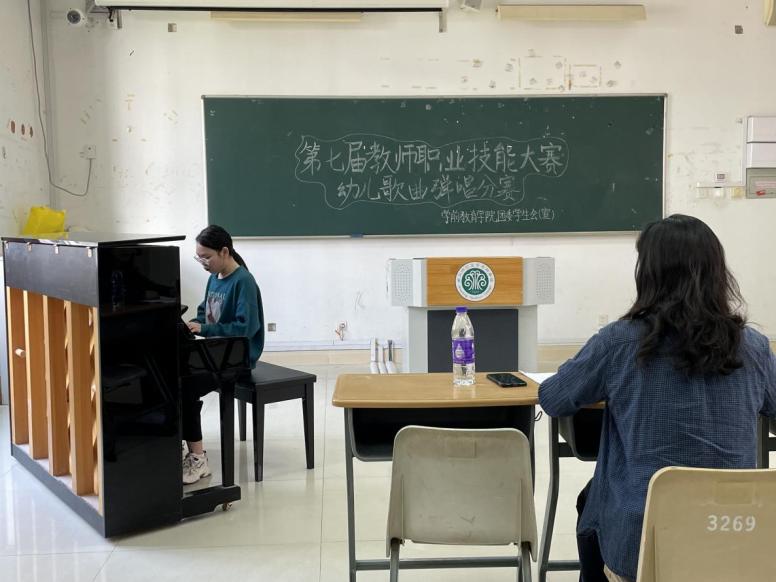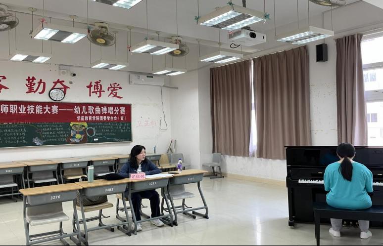 为了贯彻《纲要》《指南》中的精神,提高师范生的专业技能,展示师范生的良好风采,近日,学前教育学院在教学楼开展了第七届教师职业技能大赛幼儿歌曲弹唱项目初赛。本次担任评委的有陈鹤老师、林萃老师、程妍青老师、林雨晗老师以及冒欣悦老师。