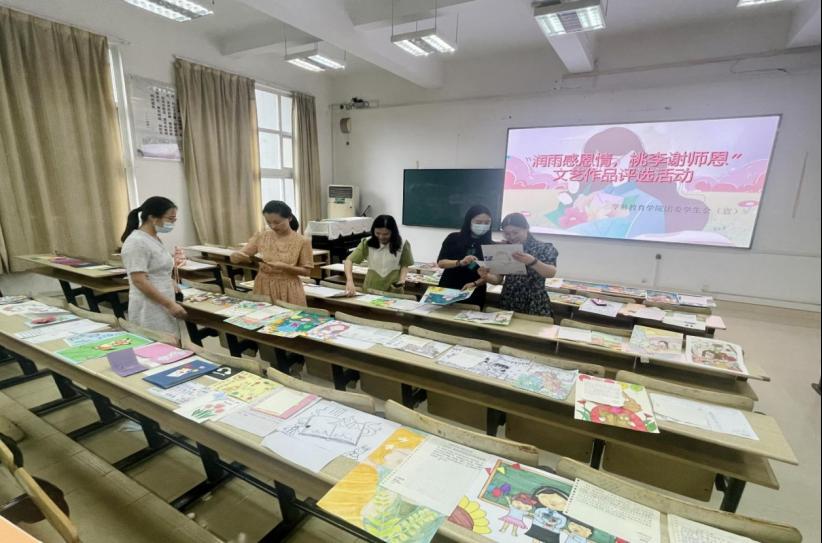 为了弘扬尊师重道的传统美德,营造“感念师恩”的节日氛围,感受广大教师爱岗敬业、无私奉献的精神以及培养学院学子尊师、爱师的良好品格,9月5日,学前教育学院开展了“润雨感恩情,桃李谢师恩”文艺作品评选活动。在本次活动中,学院全体学生积极参与,由各班辅导员老师担任评委。