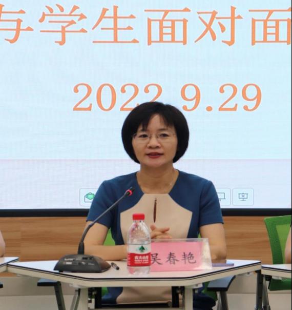 最后,学院党委书记吴春艳做总结性发言。她首先感谢同学们以主人翁态度对学校、学院建设发展提出的宝贵建议,希望在座的学生代表成为学院和学生之间的桥梁和纽带。她表示,学校和学院都高度重视和关心同学们的学习、生活,各部门都在努力地做好各项工作。对于同学们提出的具体问题,她要求学院能够自己解决的问题应立即着手给予解决,要与其他部门反映、沟通的问题也要做到件件有落实,件件有反馈。她表示,学院会尽力解决同学们的合理诉求,为同学们成长成才提供更好的条件。
