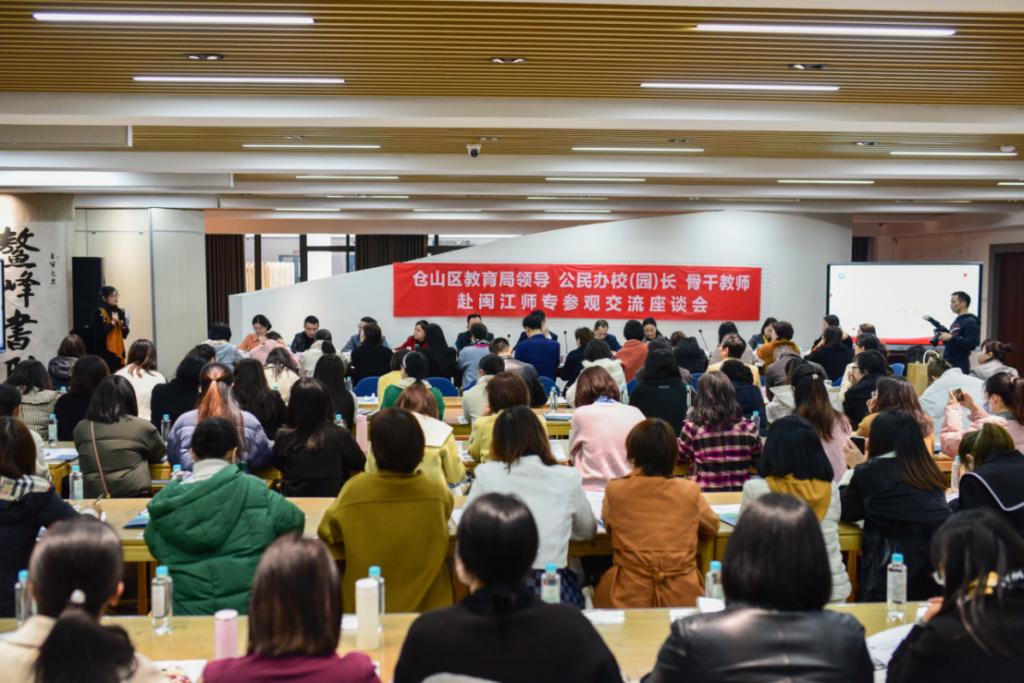 3月2日上午仓山区委教育工委书记,仓山区教育局党组书记、局长廖青带队,组织105名仓山区属公民办学校校(园)长及骨干教师来我校参观交流并开展座谈会。陈强副校长出席座谈会。学前教育学院柔性引进带头人、学前教育学院学术系主任丁海东,学前教育学院院长林毓君,副院长陈闽光、吴敏、王丹丹等党政班子成员,教研室主任,教师代表及附属幼儿园各园所负责人参加活动。活动由学前教育学院(福州幼教集团)党委副书记(主持工作)王海波主持。