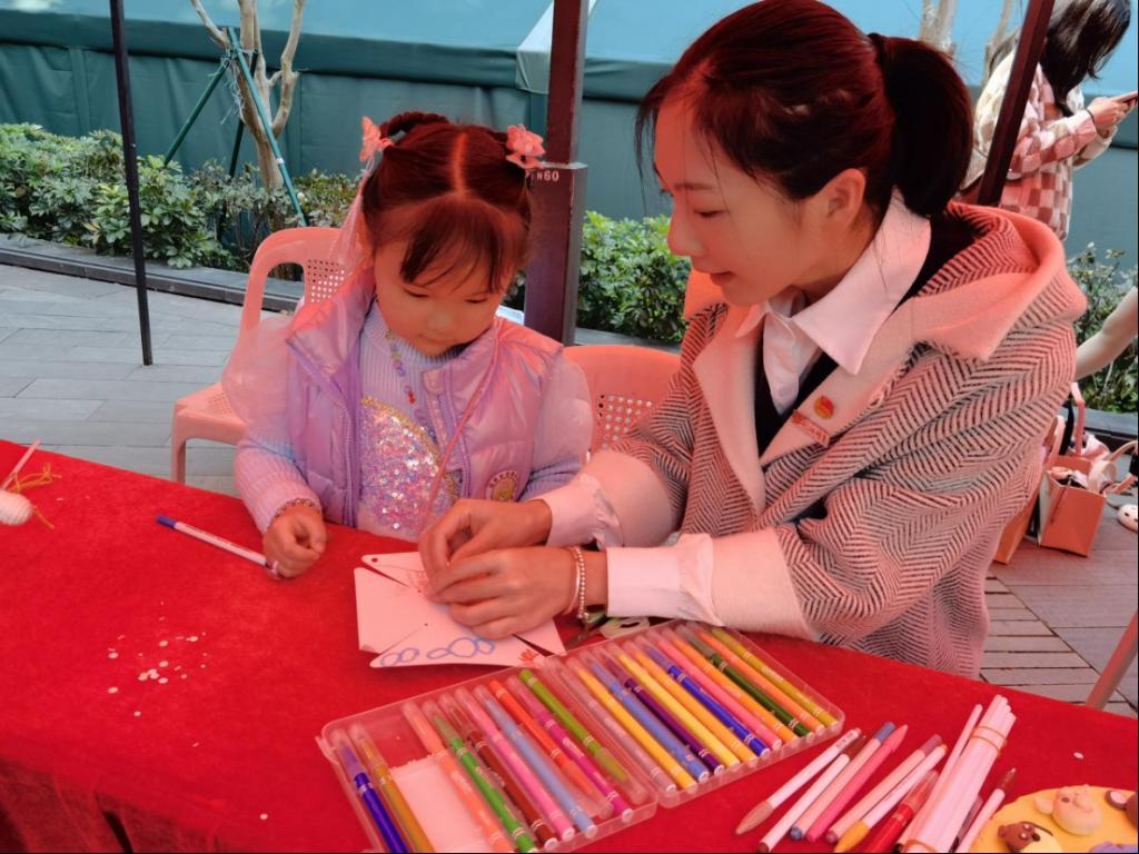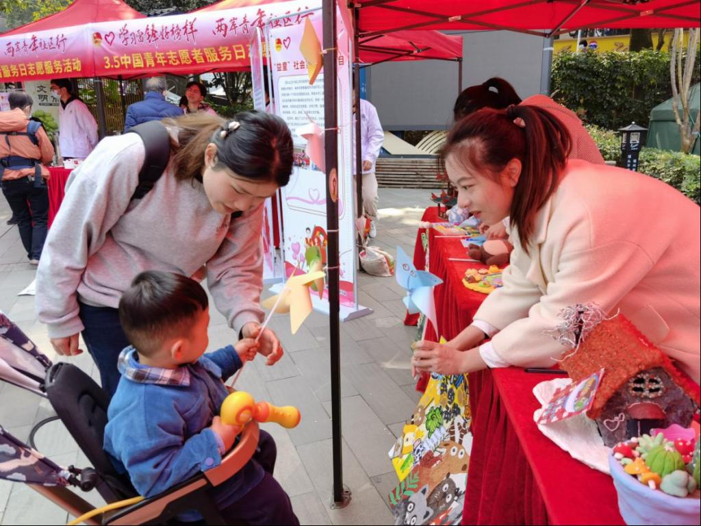 活动中,我院志愿者热情地为来往的社区群众宣传学院的“益童”社会实践服务项目和服务内容,并在活动现场开设了DIY手工课,受到了家长和小朋友们的关注和欢迎。在志愿者们的指导下,小朋友们和家长一起互动,发挥自己独特的想象力,制作出一个个精美的手工作品,有五彩风车、手工画等……