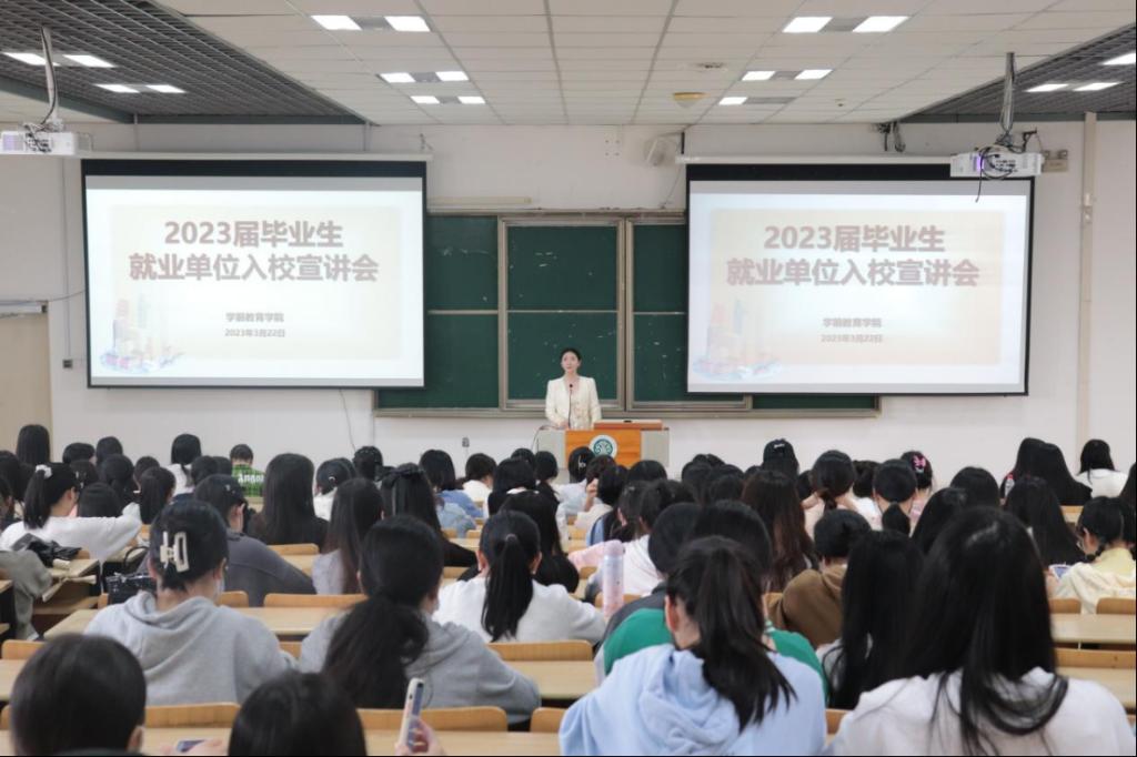 为了提高学前教育学院2023届毕业生就业质量,满足我院毕业生就业需求,向毕业生提供更多优质的就业服务和指导,3月22日下午,我院举行2023届毕业生就业专场宣讲会。会议由毕业班辅导员陈晓萌老师主持,来校宣讲招聘企业及2023届全体毕业生参加此次宣讲会,现场氛围积极且热烈。