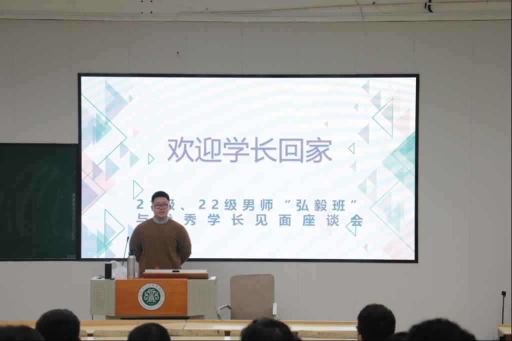 陈鹤老师与许琮皓老师在座谈会后,结合学长的发言,也对男师“弘毅班”的同学们一些学习、职业规划方面的建议和更高要求,并希望弘毅班“有前程可翘首,有记忆可回望”。