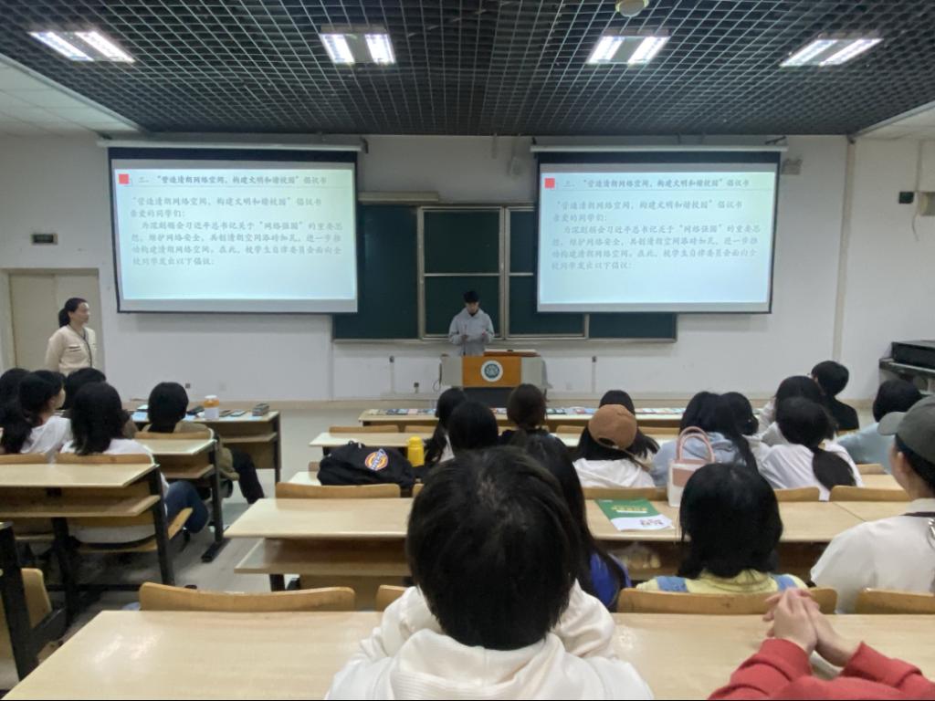 周末主题教育会上,各年级辅导员向同学们宣讲《中华人民共和国网络安全法》有关知识,并列举近期引发热议的“苏州大学学生恶意P图侮辱女性”事件,告诫同学们以案为鉴,深刻认识到网络暴力、网络犯罪带来的严重后果,倡导同学们加强法治观念,做到依法上网、文明上网,汇聚向上向善力量,携手建设网络文明。