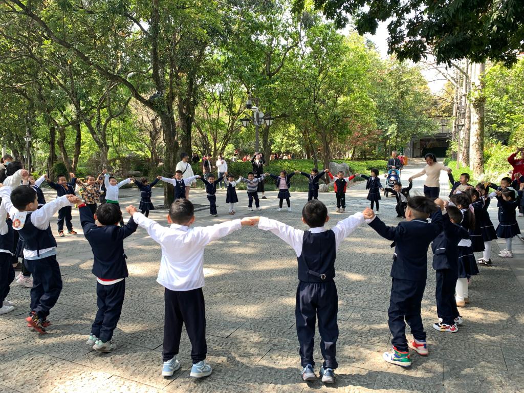 春游在各班老师的组织中,井然有序地进行着,小朋友紧跟着老师们的步伐,见习老师“左右护法”在一旁跟随,观察孩子们的动向,留意孩子们的安全。天真又烂漫的孩子们就是见习生们快乐的源泉,大家看到这一群可爱又活泼的孩子们仿佛又回到童年,在欢声笑语中自由自在的游玩。